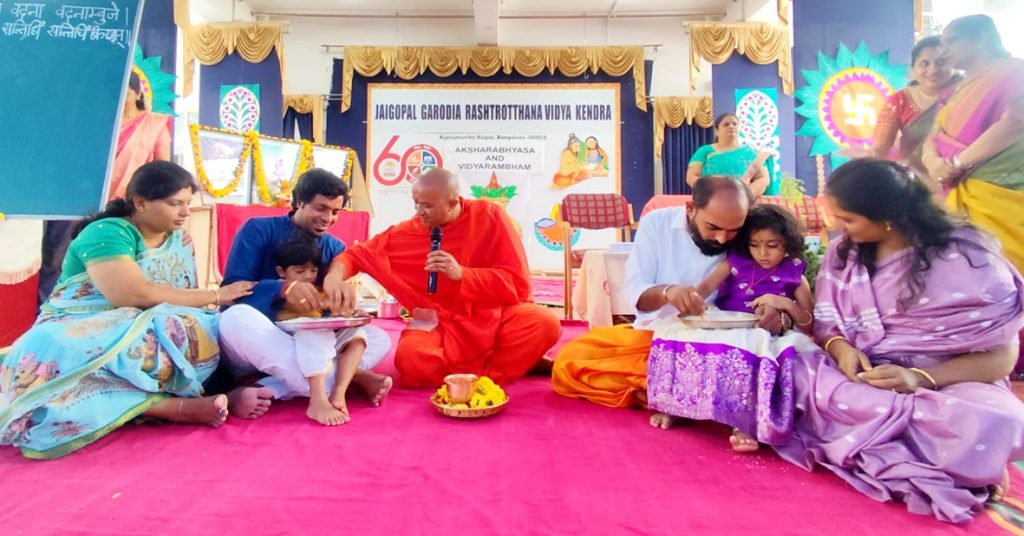 Ramamurthy Nagar organised Aksharabhyasa and Vidyarambha.