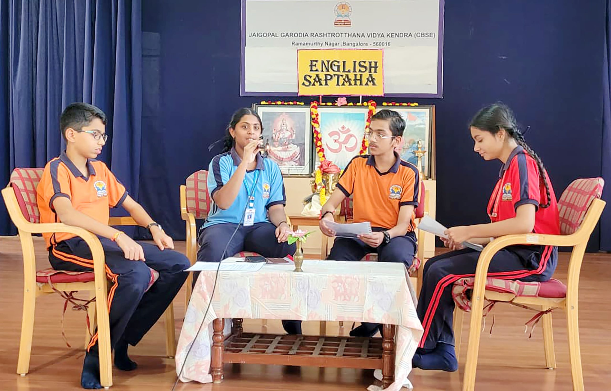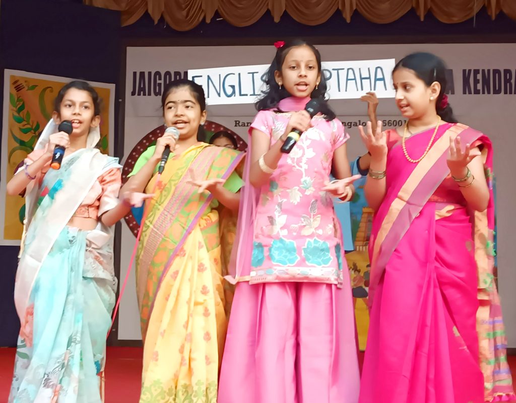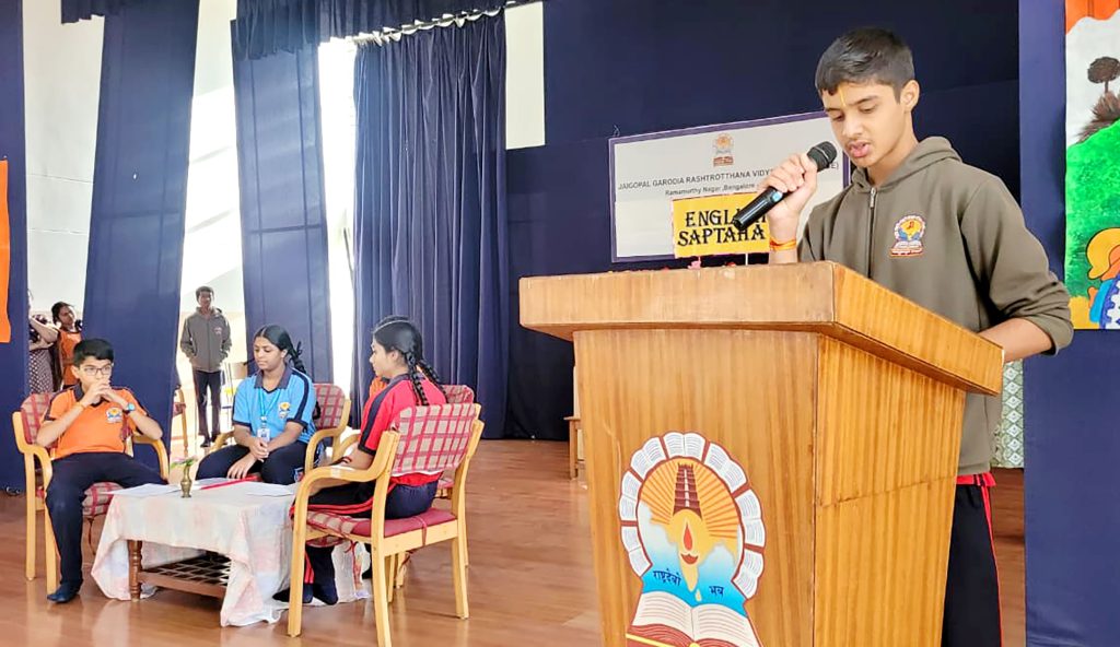 Bengaluru, Feb. 10: The first day of English Week was celebrated herein Jaigopal Garodia Rashtrotthana Vidya Kendra – Ramamurthy Nagar. Students of class 3 and 4 recited poems by Sarojini Naidu. Students from grades 5 and 9 hosted a radio program on the topic of ‘How to prepare for exams’.