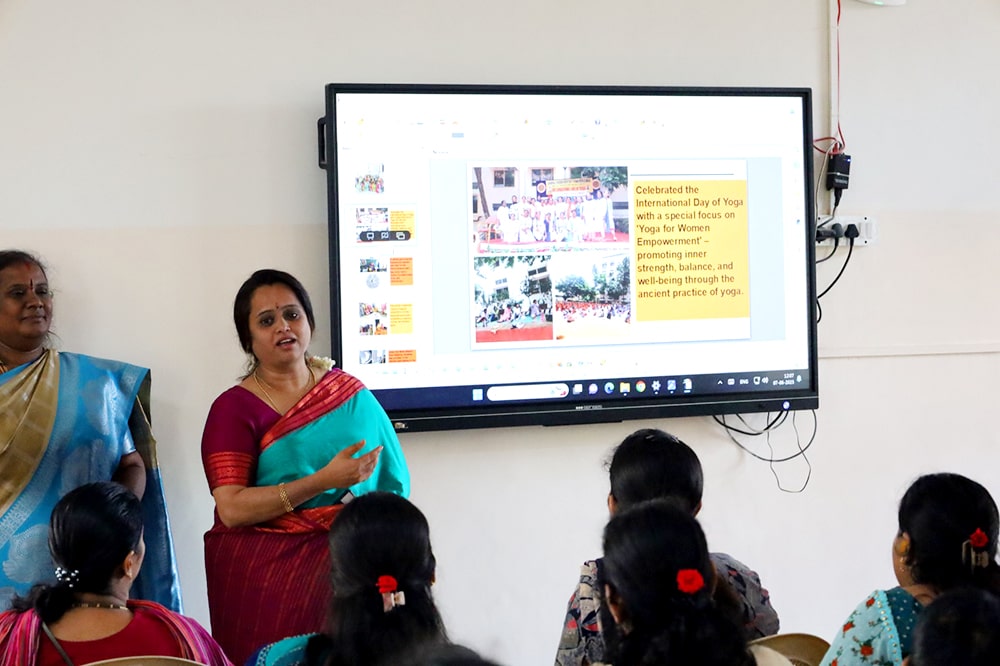 the activities of 2024-25. The Principal, Smt. Prema Surender, spoke about the purpose behind the various projects of self-care, service spirit and Rashtrotthana. Bookmarks created by the students were given as a token of love.The sessions concluded after the interaction.