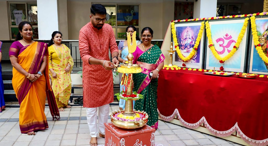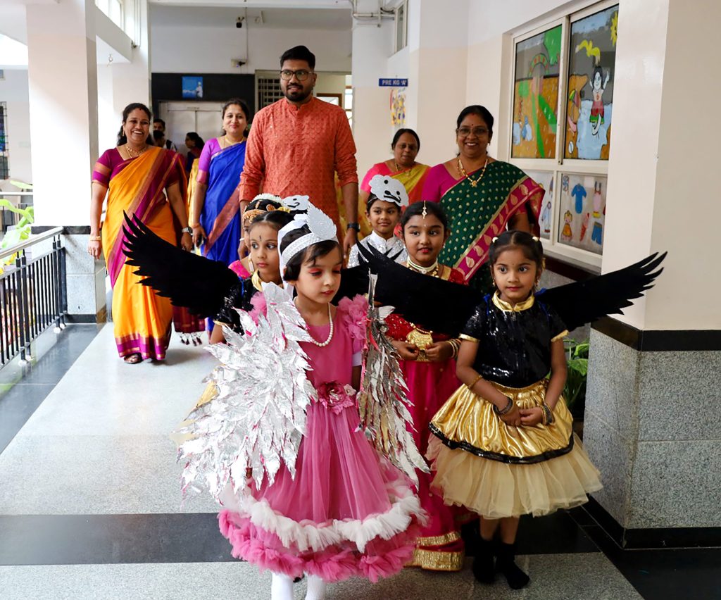 Bengaluru, Feb. 12: Jaigopal Garodia Rashtrotthana Vidya Kendra – Ramamurthy Nagar organized Rashtrotsava for U KG students under the theme ‘Nadalhari’. Sri Bharat Ram, Architect, Ecolab Digital Centre, was the chief guest for the event. The little ones of UKG presented the seven vowels – Sa, Ri, Ga, Ma, Pa, Da, Ni – beautifully depicting the birth of vowels and their deep significance in our daily lives. Each vowel is thoughtfully connected to colours, deities and animals, reflecting the deep spiritual and cultural roots of Indian music. In his address, the chief guest shared that the students are the future of India – entrepreneurs, engineers, doctors and leaders of tomorrow. He spoke about the influence of Western culture on Indian culture and appreciated how the teachers of JGRVK are beautifully inculcating traditional values along with modern education. He stressed that the true wealth of a nation lies not only in its economic strength, but in the richness of its culture. History speaks of the depth of music that evokes childhood memories and connects generations. “There is no learning without music. Music is learning; music is emotion,” he opined. He further explained that in music, rhythm (laya) is the father and shruti (pitch) is the mother. He explained that music enhances concentration and activates our jnanendriyas (senses), nourishing both the mind and the soul.