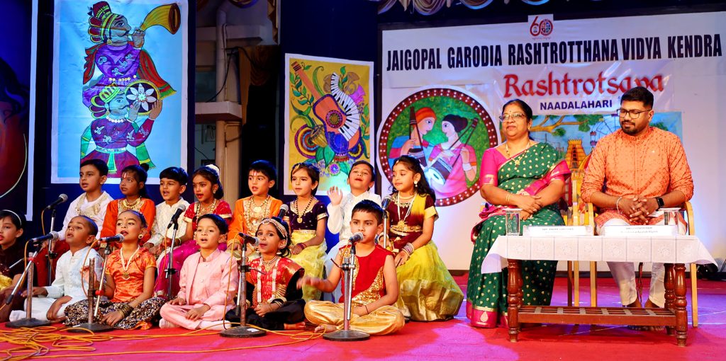 ಬೆಂಗಳೂರು, ಫೆ. 12: ಜೈಗೋಪಾಲ್‌ ಗರೋಡಿಯಾ ರಾಷ್ಟ್ರೋತ್ಥಾನ ವಿದ್ಯಾಕೇಂದ್ರ – ರಾಮಮೂರ್ತಿನಗರದಲ್ಲಿ ಯುಕೆಜಿ ವಿದ್ಯಾರ್ಥಿಗಳಿಗಾಗಿ ʼನಾದಲಹರಿʼ ವಿಷಯದಡಿಯಲ್ಲಿ ರಾಷ್ಟ್ರೋತ್ಸವವನ್ನು ಹಮ್ಮಿಕೊಳ್ಳಲಾಗಿತ್ತು. ಕಾರ್ಯಕ್ರಮಕ್ಕೆ ಮುಖ್ಯ ಅತಿಥಿಗಳಾಗಿ ಇಕೋಲ್ಯಾಬ್ ಡಿಜಿಟಲ್ ಸೆಂಟರ್‌ನ ವಾಸ್ತುಶಿಲ್ಪಿ ಶ್ರೀ ಭರತ್ ರಾಮ್ ಆಗಮಿಸಿದ್ದರು. ಯುಕೆಜಿಯ ಪುಟ್ಟ ಮಕ್ಕಳು ಸಪ್ತ ಸ್ವರಗಳನ್ನು – ಸ, ರಿ, ಗ, ಮ, ಪ, ದ, ನಿ – ಪ್ರಸ್ತುತಪಡಿಸಿದರು. ಸ್ವರಗಳ ಜನನ ಮತ್ತು ನಮ್ಮ ದೈನಂದಿನ ಜೀವನದಲ್ಲಿ ಅವುಗಳ ಆಳವಾದ ಮಹತ್ವವನ್ನು ಸುಂದರವಾಗಿ ಚಿತ್ರಿಸಿದರು. ಪ್ರತಿಯೊಂದು ಸ್ವರವು ಬಣ್ಣಗಳು, ದೇವತೆಗಳು ಮತ್ತು ಪ್ರಾಣಿಗಳೊಂದಿಗೆ ಚಿಂತನಶೀಲವಾಗಿ ಸಂಪರ್ಕ ಹೊಂದಿದ್ದು, ಭಾರತೀಯ ಸಂಗೀತದ ಆಳವಾದ ಆಧ್ಯಾತ್ಮಿಕ ಮತ್ತು ಸಾಂಸ್ಕೃತಿಕ ಬೇರುಗಳನ್ನು ಪ್ರತಿಬಿಂಬಿಸುತ್ತದೆ ಎನ್ನುವುದನ್ನು ಪ್ರಸ್ತುತಪಡಿಸಿದರು.ಮುಖ್ಯ ಅತಿಥಿಗಳು ತಮ್ಮ ಭಾಷಣದಲ್ಲಿ, ವಿದ್ಯಾರ್ಥಿಗಳು ಭಾರತದ ಭವಿಷ್ಯ – ಉದ್ಯಮಿಗಳು, ಎಂಜಿನಿಯರ್‌ಗಳು, ವೈದ್ಯರು ಮತ್ತು ನಾಳಿನ ನಾಯಕರು ಎಂದು ಹಂಚಿಕೊಂಡರು. ಭಾರತೀಯ ಸಂಸ್ಕೃತಿಯ ಮೇಲೆ ಪಾಶ್ಚಿಮಾತ್ಯ ಸಂಸ್ಕೃತಿಯ ಪ್ರಭಾವದ ಬಗ್ಗೆ ಅವರು ಮಾತನಾಡಿದರು ಮತ್ತು ಜೆಜಿಆರ್‌ವಿಕೆ ಶಿಕ್ಷಕರು ಆಧುನಿಕ ಶಿಕ್ಷಣದ ಜೊತೆಗೆ ಸಾಂಪ್ರದಾಯಿಕ ಮೌಲ್ಯಗಳನ್ನು ಹೇಗೆ ಸುಂದರವಾಗಿ ಬೆಳೆಸುತ್ತಿದ್ದಾರೆ ಎಂಬುದನ್ನು ಶ್ಲಾಘಿಸಿದರು. ಒಂದು ರಾಷ್ಟ್ರದ ನಿಜವಾದ ಶ್ರೀಮಂತಿಕೆ ಕೇವಲ ಅದರ ಆರ್ಥಿಕ ಬಲದಲ್ಲಿಲ್ಲ, ಆದರೆ ಅದರ ಸಂಸ್ಕೃತಿಯ ಶ್ರೀಮಂತಿಕೆಯಲ್ಲಿದೆ ಎಂದು ಅವರು ಒತ್ತಿ ಹೇಳಿದರು. ಬಾಲ್ಯದ ನೆನಪುಗಳನ್ನು ಹುಟ್ಟುಹಾಕುವ ಮತ್ತು ಪೀಳಿಗೆಗಳನ್ನು ಸಂಪರ್ಕಿಸುವ ಸಂಗೀತದ ಆಳದ ಬಗ್ಗೆ ಇತಿಹಾಸವು ಹೇಳುತ್ತದೆ. “ಸಂಗೀತವಿಲ್ಲದೆ ಕಲಿಕೆ ಇಲ್ಲ. ಸಂಗೀತವೇ ಕಲಿಕೆ; ಸಂಗೀತವೇ ಭಾವನೆ” ಎಂದು ಅಭಿಪ್ರಾಯಪಟ್ಟರು. ಸಂಗೀತದಲ್ಲಿ, ಲಯ (ಲಯ) ತಂದೆ ಮತ್ತು ಶ್ರುತಿ (ಪಿಚ್) ತಾಯಿ ಎಂದು ಅವರು ಮತ್ತಷ್ಟು ವಿವರಿಸಿದರು. ಸಂಗೀತವು ಏಕಾಗ್ರತೆಯನ್ನು ಹೆಚ್ಚಿಸುತ್ತದೆ ಮತ್ತು ನಮ್ಮ ಜ್ಞಾನೇಂದ್ರಿಯಗಳನ್ನು (ಇಂದ್ರಿಯಗಳನ್ನು) ಸಕ್ರಿಯಗೊಳಿಸುತ್ತದೆ, ಮನಸ್ಸು ಮತ್ತು ಆತ್ಮ ಎರಡನ್ನೂ ಪೋಷಿಸುತ್ತದೆ ಎಂದು ವಿವರಿಸಿದರು.