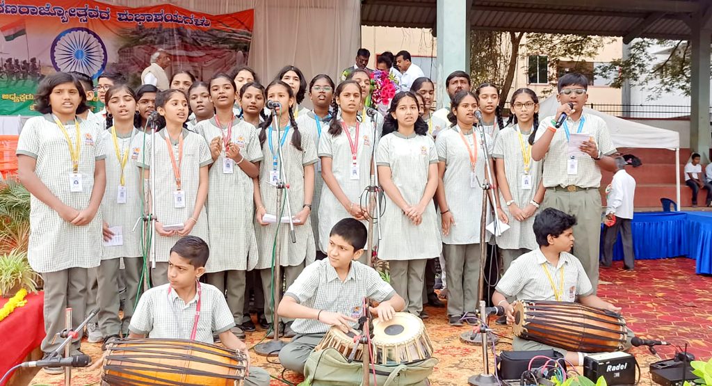Bengaluru, Jan. 26: Republic Day was celebrated at the Rajiv Gandhi Stadium, Govt First Grade College, Krishnarajapuram, Bengaluru, under the Govt School Service Scheme of Jaigopal Garodia Rashtrotthana Vidya Kendra – Ramamurthy Nagar. The students of JGRVK performed the national anthem “Vande Mataram”, the national anthem and the farmer’s anthem. Sri J. Byrathi Basavaraj, MLA, and the Urban Development Minister of the Govt of Karnataka were present at the event.
