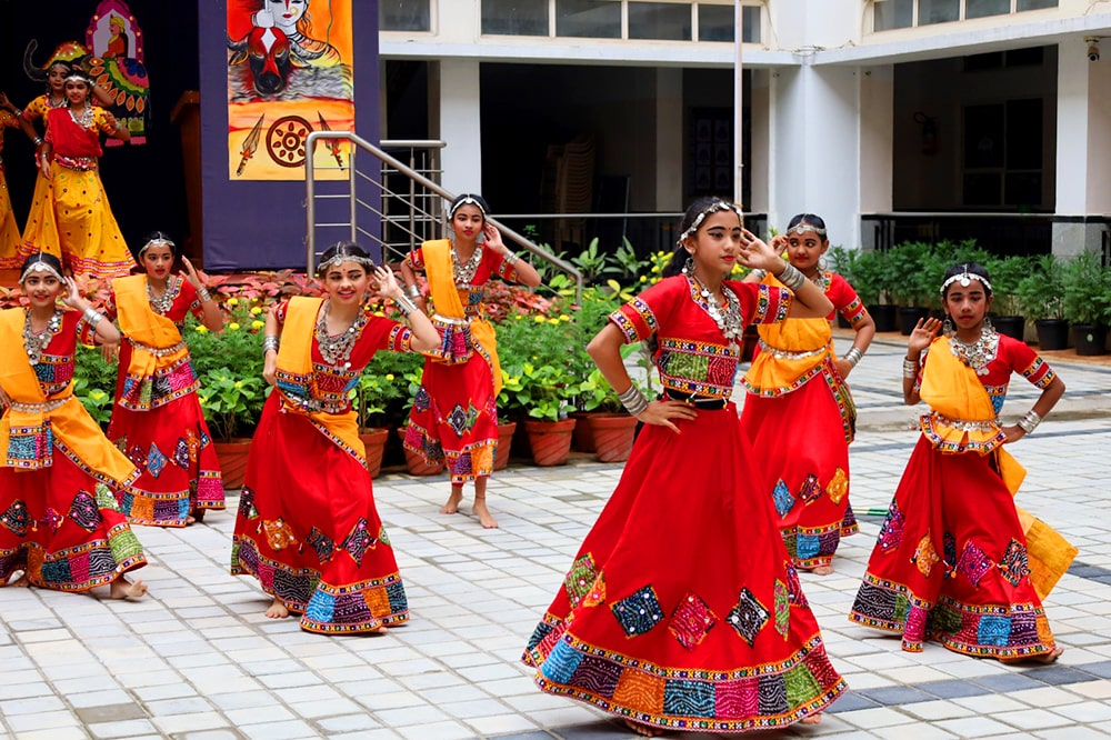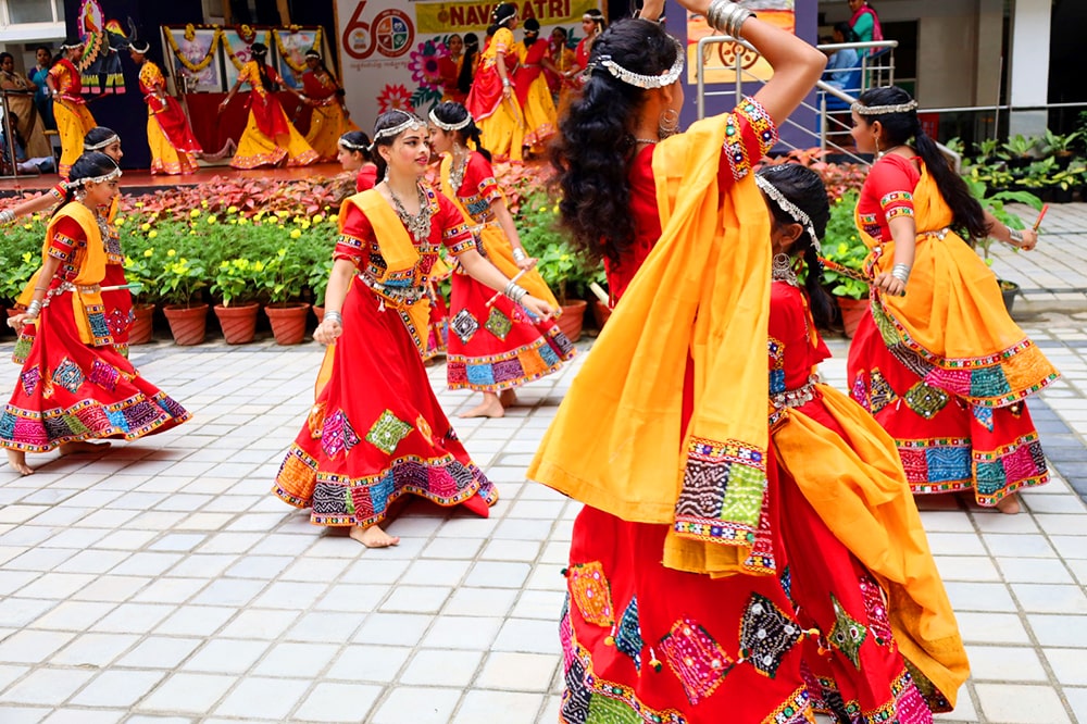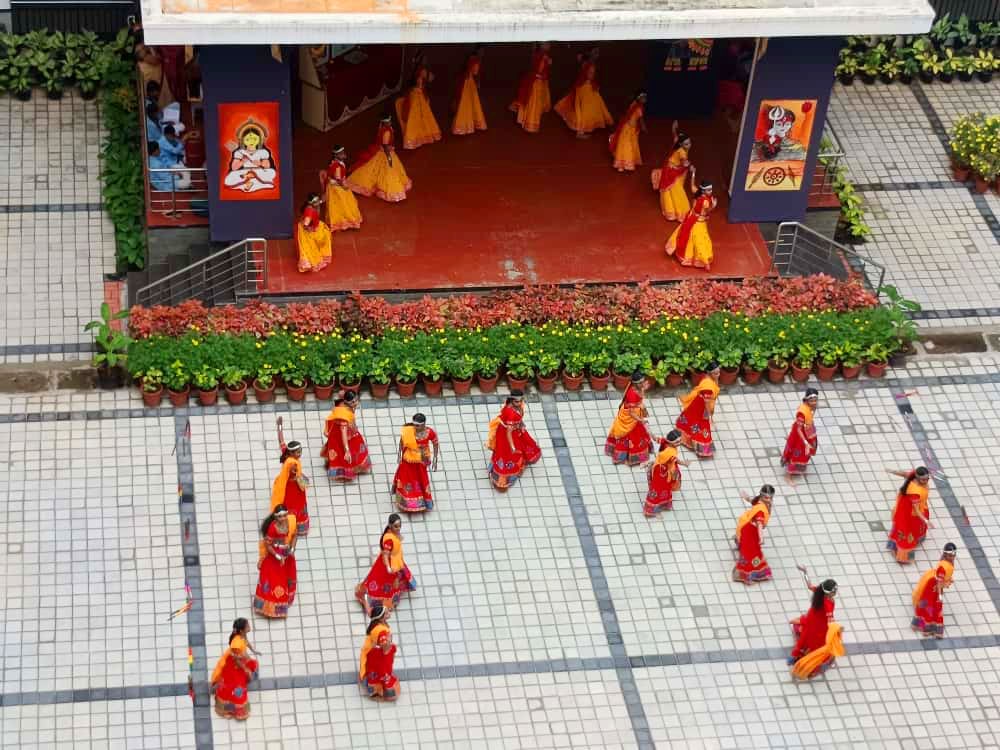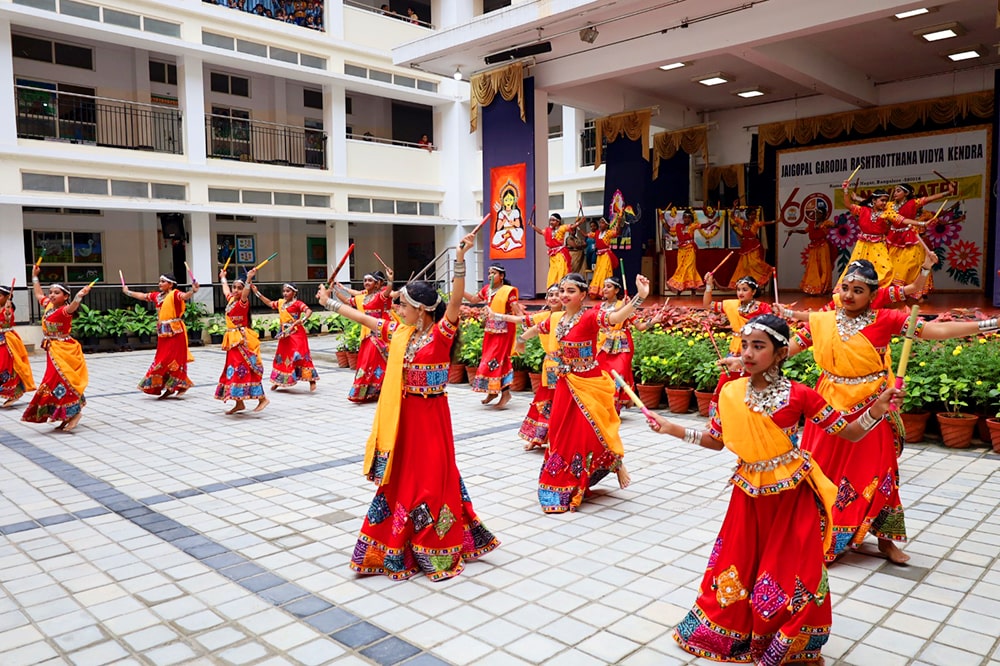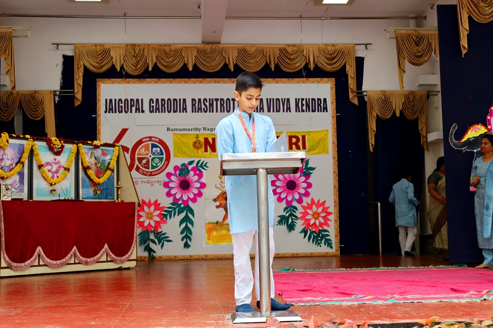 Bengaluru, Sept. 20: Navratri Mysuru Dasara, also known as Nadahabba and officially recognized as Karnataka State Festival, was celebrated herein Jaigopal Garodia Rashtrotthana Vidya Kendra – Ramamurthy Nagar. The program began with an informative speech on Navaratri by the students, who explained the importance of the nine nights of devotion, dance and celebration. There was a wonderful Garba dance performance by the students.