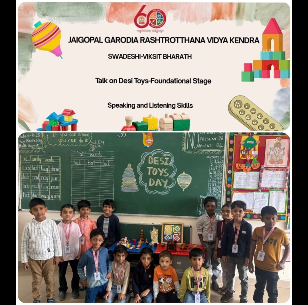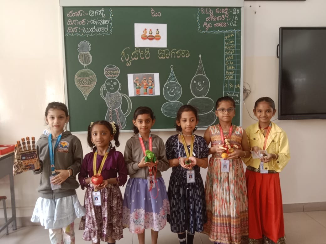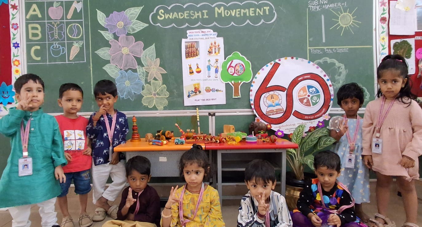 ಸ್ವದೇಶಿ ಆಂದೋಲನದ ಸ್ವಭಾಷಾ ಥೀಮ್‌ನ ಭಾಗವಾಗಿ, ಮೂಲಭೂತ ಹಂತದಲ್ಲಿವಿದ್ಯಾರ್ಥಿಗಳು ದೇಸಿ/ ಸಾಂಪ್ರದಾಯಿಕ ಭಾರತೀಯ ಆಟಿಕೆಗಳು ಮತ್ತು ಆಟಗಳನ್ನು ತಂದು ಅವುಗಳ ಬಗ್ಗೆ ತಮ್ಮ ಸ್ಥಳೀಯ ಭಾಷೆಗಳಲ್ಲಿ ಮಾತನಾಡಿದರು.