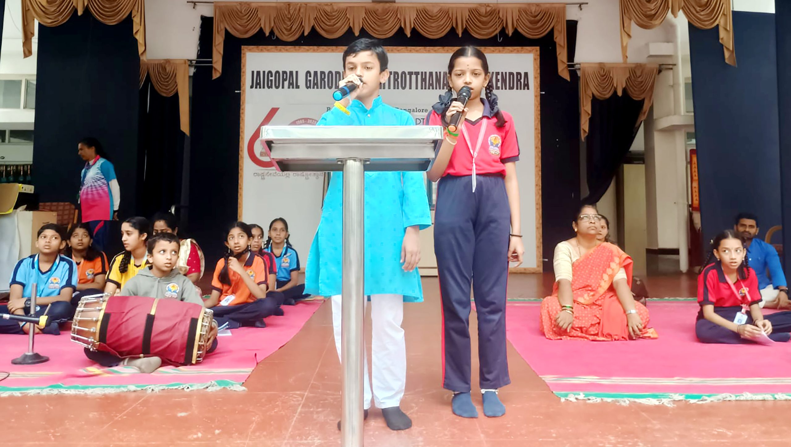 Bengaluru, Aug. 1: The inauguration of Sanskrit Week was organized herein Jaigopal Garodia Rashtrotthana Vidya Kendra – Ramamurthy Nagar. The students explained the importance of Sanskrit language, its cultural heritage and timeless relevance. And sang ʼGanesh Pancharatnamʼ.