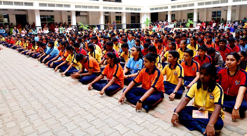 The school was decorated with garlands and the Principal, Smt. Gowri Senthil, performed pujas to the portrait of Sri Rama. The students performed bhajans, dances and sang devotional songs of Sri Rama in the school premises. Later, the students performed bhajans and danced on the main streets near the school and reached the Sri Kodandaramaswamy temple and received the blessings of Sri Rama. After offering Rama, they had Panaka, Buttermilk and Kosambari.