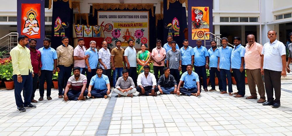 Bengaluru, Sept. 22: Jaigopal Garodia Rashtrotthana Vidya Kendra – Dasara celebration started with the installation of Kalasha by Principal