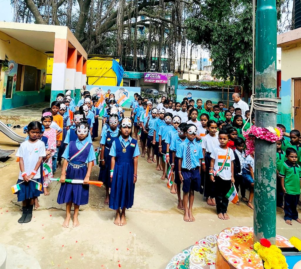 ಬೆಂಗಳೂರು, ಆ. 15: ಜೈಗೋಪಾಲ್ ಗರೋಡಿಯಾ ರಾಷ್ಟ್ರೋತ್ಥಾನ ವಿದ್ಯಾಕೇಂದ್ರ –ರಾಮಮೂರ್ತಿನಗರದಲ್ಲಿ ಸರ್ಕಾರಿ ಶಾಲೆಯಲ್ಲಿ 79ನೇ ಸ್ವಾತಂತ್ರ್ಯೋತ್ಸವವನ್ನು ಆಚರಿಸಲಾಯಿತು.