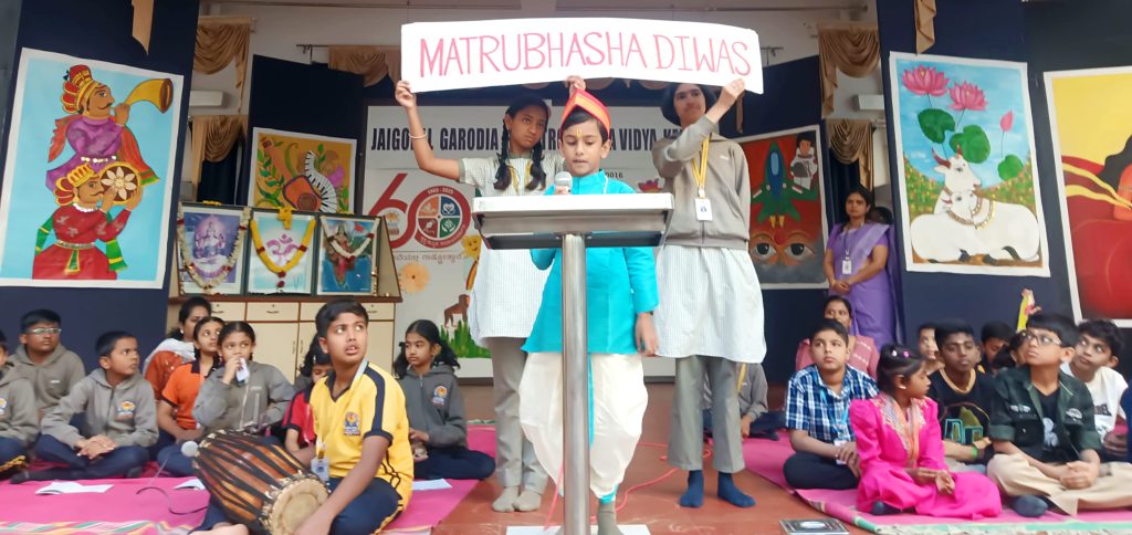 Bengaluru, Feb. 18: Science Week and National Science Day were celebrated herein Jaigopal Garodia Rashtrotthana Vidya Kendra – Ramamurthy Nagar. The slogan of the day was “Science Today, Better Tomorrow”. The programme started with the students explaining the importance of science.The students of class 1 sang the rhyme “The farmer sows the seed” and beautifully presented it using attractive flashcards.