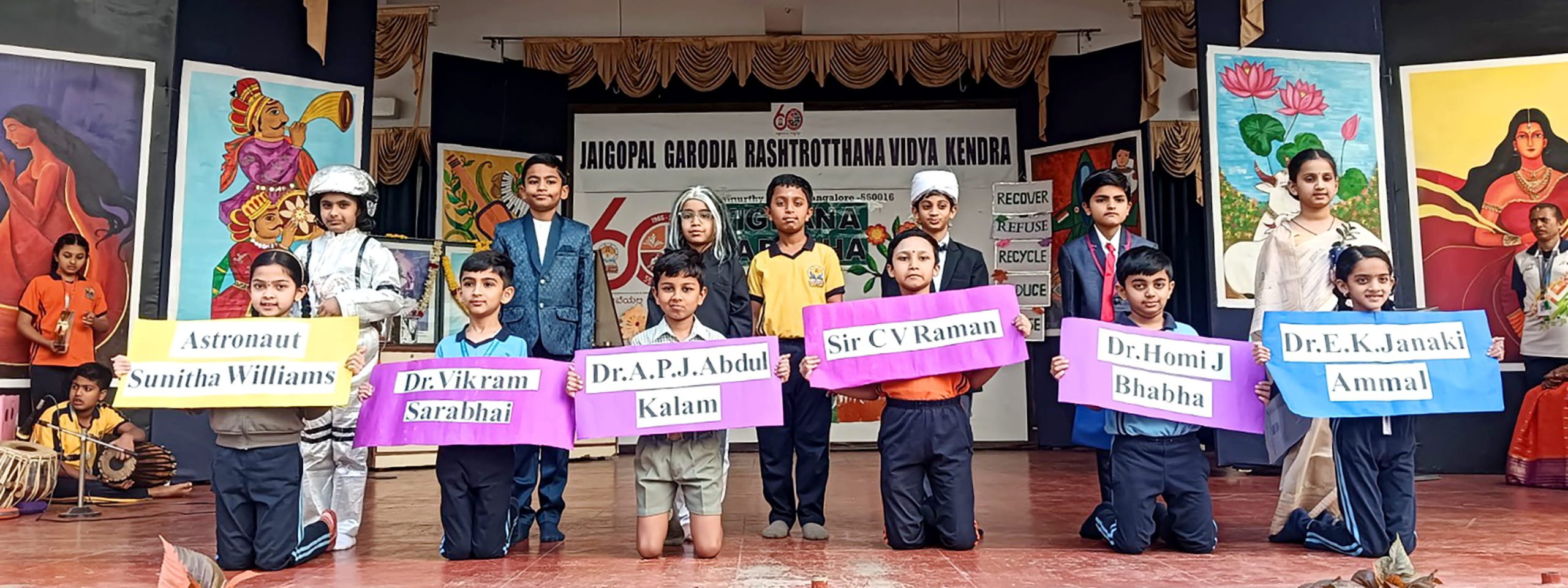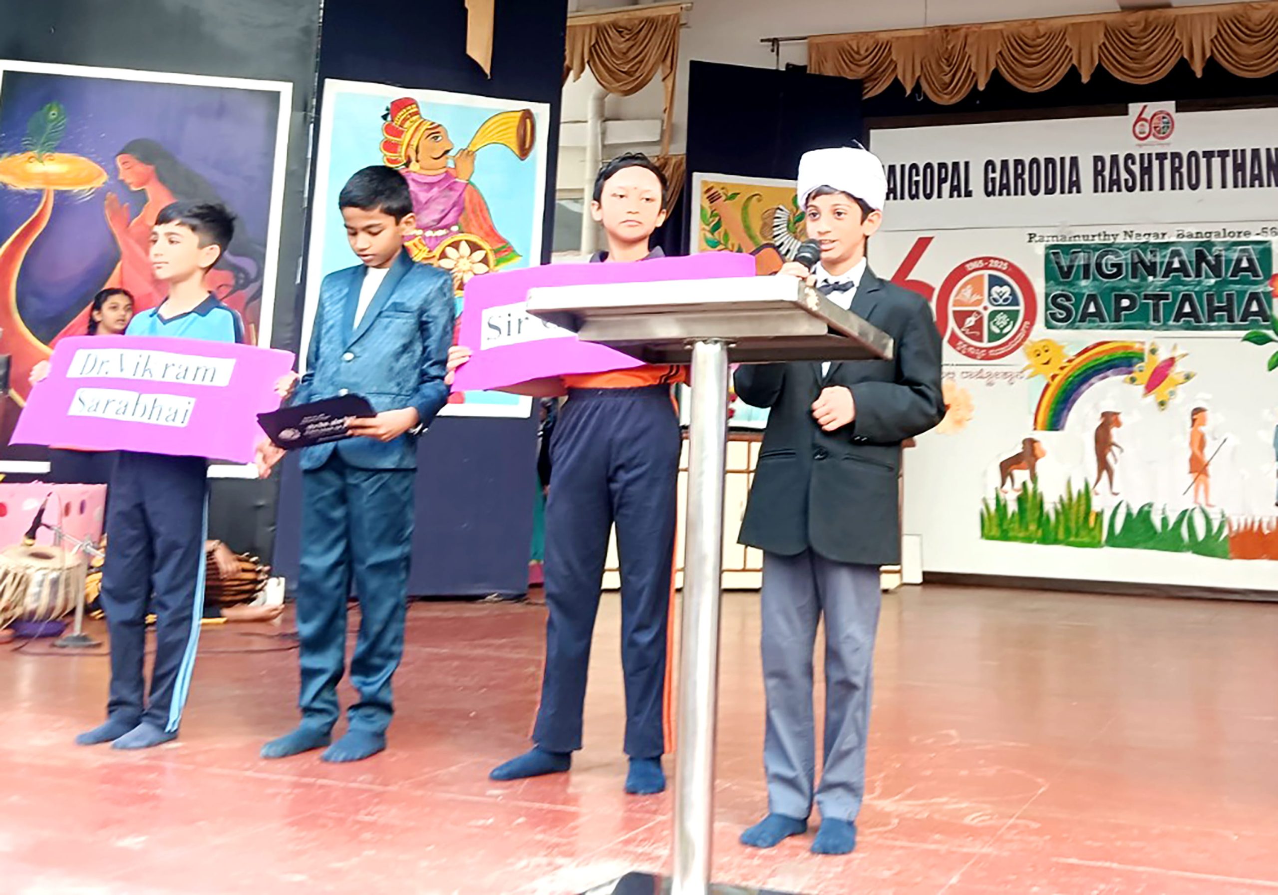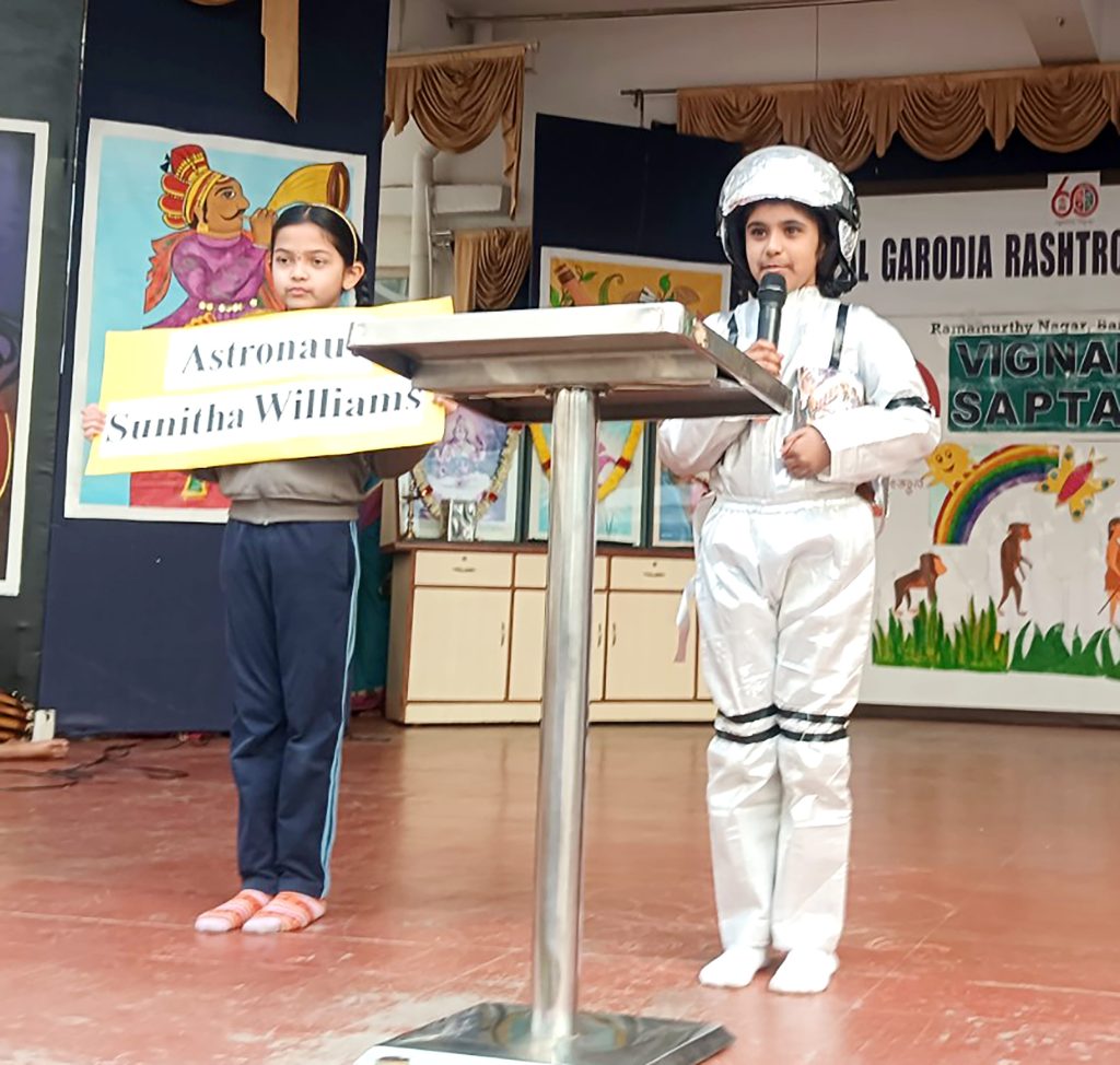 ವಿದ್ಯಾರ್ಥಿಗಳು ಜಾನಕಿ ಅಮ್ಮಾಳ್, ಹೋಮಿ ಭಾಭಾ, ಸಿ.ವಿ. ರಾಮನ್, ಎ.ಪಿ.ಜೆ. ಅಬ್ದುಲ್ ಕಲಾಂ, ವಿಕ್ರಮ್ ಸಾರಾಭಾಯಿ ಮತ್ತು ಸುನೀತಾ ವಿಲಿಯಮ್ಸ್ ಅವರಂತಹ ಪ್ರಸಿದ್ಧ ವಿಜ್ಞಾನಿಗಳ ವೇಷಭೂಷಣಗಳನ್ನು ಧರಿಸಿ ವಿಜ್ಞಾನ ಕ್ಷೇತ್ರದಲ್ಲಿ ಈ ಮಹಾನ್ ವ್ಯಕ್ತಿಗಳ ಕೊಡುಗೆಗಳು ಮತ್ತು ಪಾತ್ರಗಳ ಬಗ್ಗೆ ವಿದ್ಯಾರ್ಥಿಗಳು ಆತ್ಮವಿಶ್ವಾಸದಿಂದ ಮಾತನಾಡಿದರು.