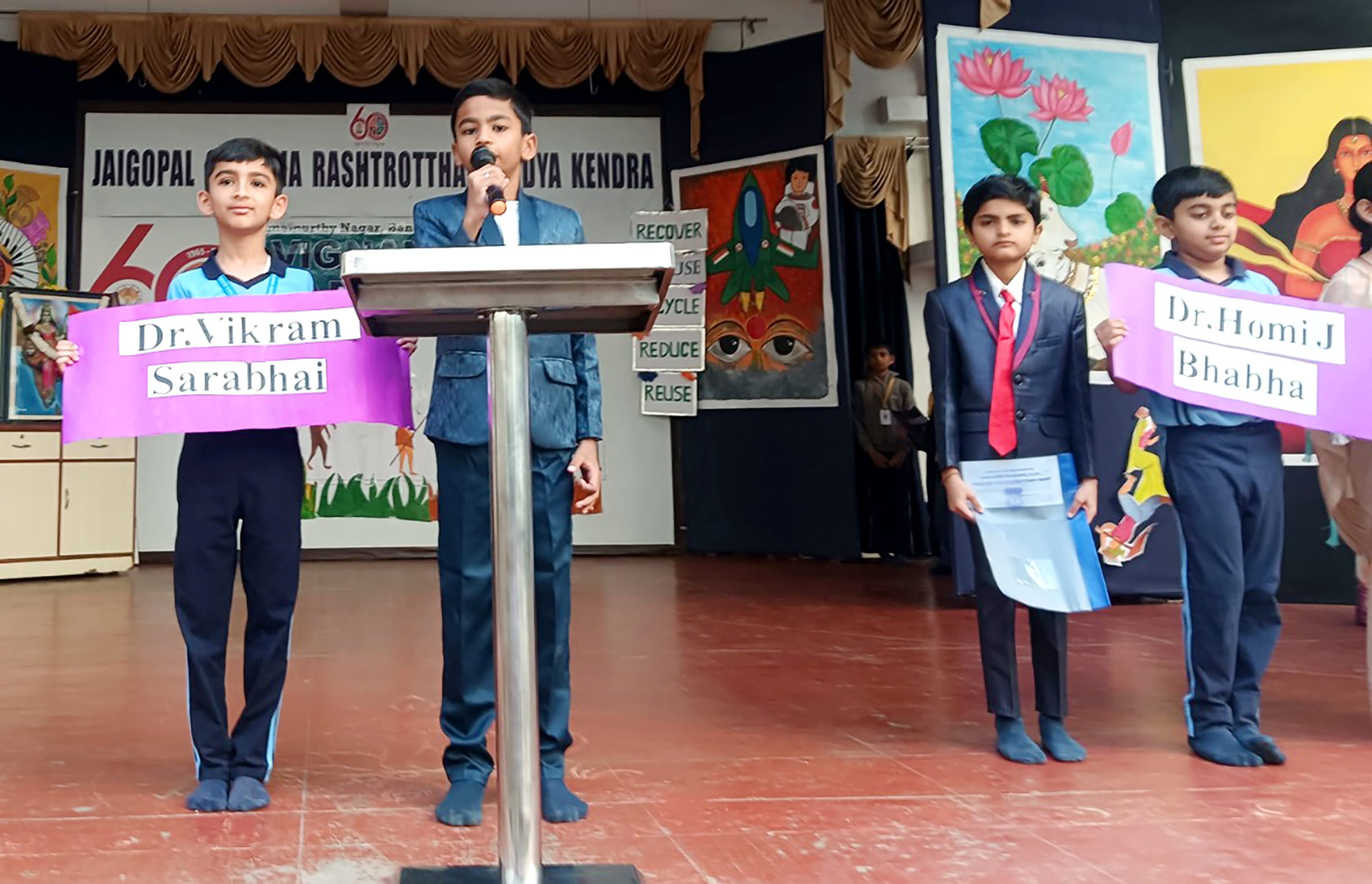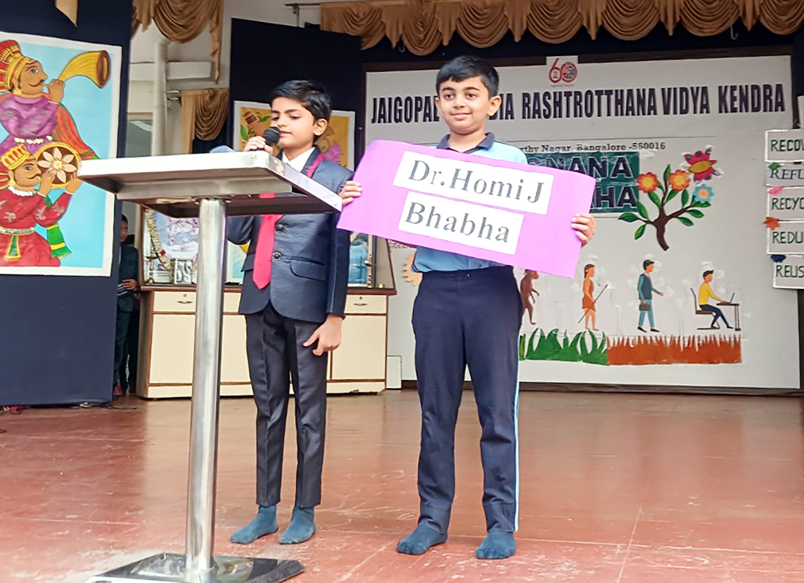 Students dressed up as famous scientists like Janaki Ammal, Homi Bhabha, C.V. Raman, A.P.J. Abdul Kalam, Vikram Sarabhai and Sunita Williams and confidently spoke about the contributions and roles of these great personalities in the field of science.
