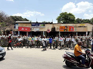 “ಗ್ರಹವನ್ನು ಉಳಿಸಿ” ಮತ್ತು “ಪ್ಲಾಸ್ಟಿಕ್ ಬೇಡ ಎಂದು ಹೇಳಿ” ನಂತಹ ಬಲವಾದ ಸಂದೇಶಗಳನ್ನು ಹೊಂದಿರುವ ಫಲಕಗಳೊಂದಿಗೆ ರ್ಯಾಲಿಯು ಶಾಲಾ ಆವರಣದಿಂದ ಪ್ರಾರಂಭವಾಯಿತು ಮತ್ತು ಎರಡು ಗುಂಪುಗಳಾಗಿ ವಿಭಜನೆಗೊಂಡು ಒಂದು ಗುಂಪು ಟಿಸಿ ಪಾಳ್ಯಕ್ಕೆ ಪೆಡಲ್ ಮೂಲಕ ಸಾಗಿತು. ಅಲ್ಲಿ ಅವರು ಶಾಂತಿ ಲೇಔಟ್ನಲ್ಲಿ ನಿವಾಸಿಗಳಿಗೆ ಪ್ಲಾಸ್ಟಿಕ್ನ ಹಾನಿಕಾರಕ ಪರಿಣಾಮಗಳ ಬಗ್ಗೆ ಜಾಗೃತಿ ಮೂಡಿಸಿದರು.