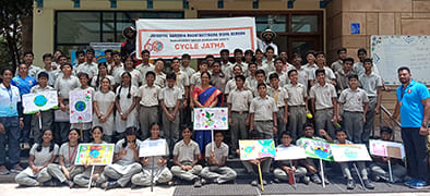Bengaluru, June 5: A cycle jatha was organised as part of World Environment Day celebrations herein Jaigopal Garodia Rashtrotthana Vidya Kendra – Ramamurthy Nagar with the theme “Pedal for the Planet – ‘Say No to Plastic’ RP @ 60”.