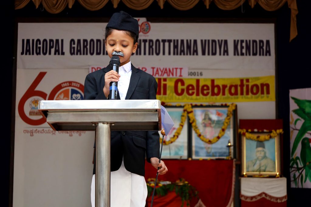 Bengaluru, Mar. 18: Jaigopal Garodia Yugadi and Dr Keshav Baliram Hegdewar Jayanti were celebrated. Student Ku. Maithili dressed up as Dr G and spoke about his contributions and sacrifices. Ku. Hita confidently highlighted the importance of Yugadi festival. Students performed a charming dance to the Yugadi song. On this auspicious occasion of Yugadi, the staff and students took a vow that “We resolve to respect our parents, teachers and elders, study honestly, help others and strive to become responsible and good citizens.”